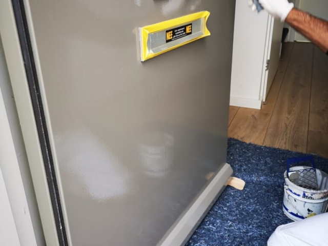 De kozijnen en deuren waren voorzien van een laag verf uit de fabriek en moesten nodig aangepakt worden. We hebben bijna alle woningen in dit blok voorzien van een nieuwe laag verf.